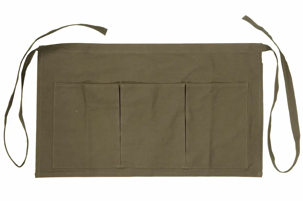 Cotton apron. Three pockets for easy storage and easily ties around the waist. Perfect in the kitchen or in the garden. Available in different colors.