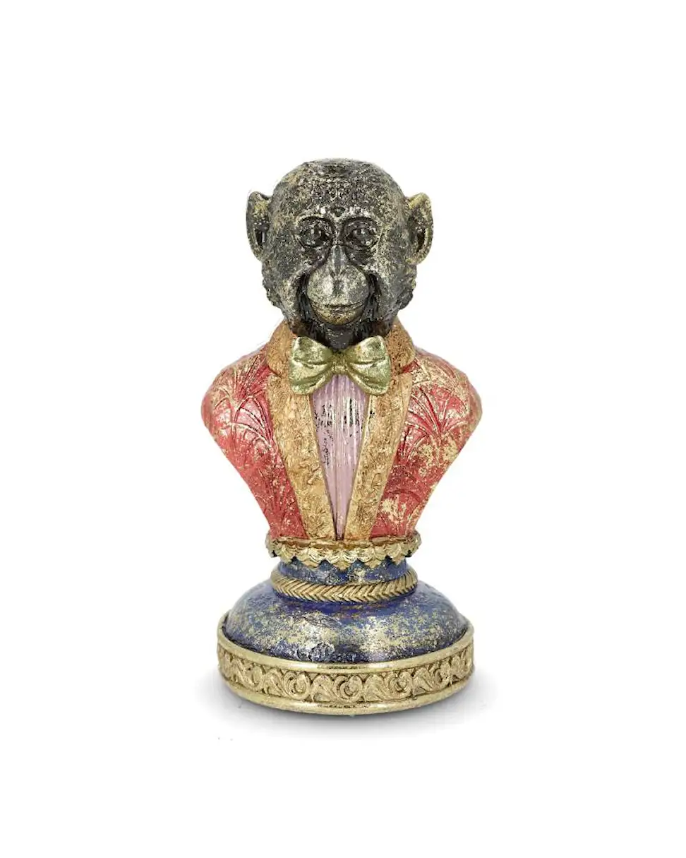 Decorate your home in playful style with a bust of a well dressed monkey. Made from poly.