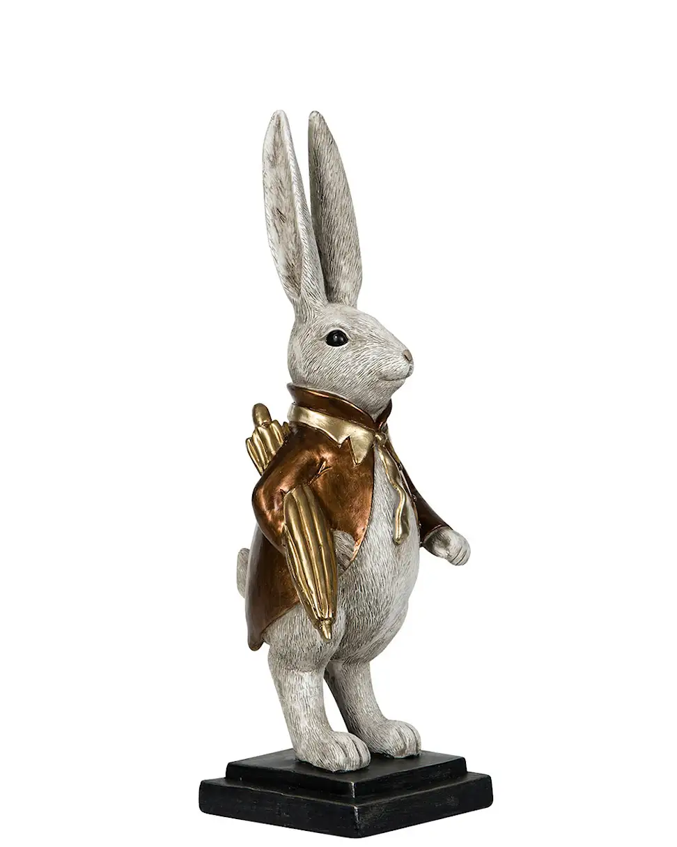Get a playful addition to your home décor with a well-dressed rabbit carrying an umbrella. Made from poly. Available in different colors.