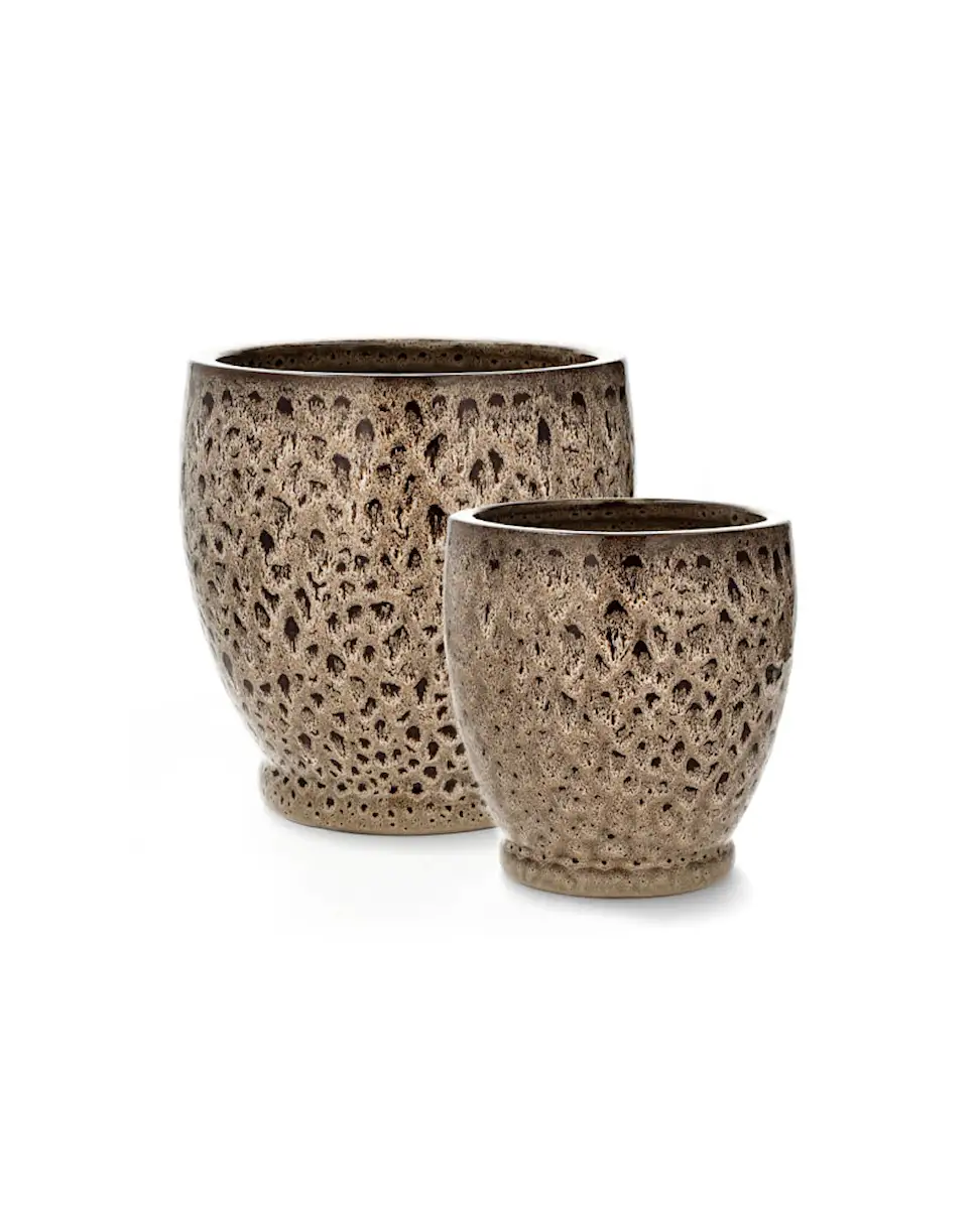 This set of three pots is perfect for the patio. They are frost-resistant and have a hole in the bottom for easy drainage. Made of earthenware. Available in different sizes.