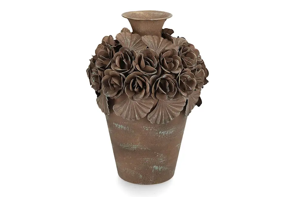 This vase with a wreath of decorative rose details is beautiful both on its own and together with flowers. Made of metal. Available in different colors.