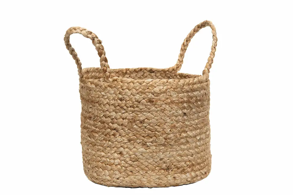 Tämä punottu kori toimii yhtä hyvin säilytysyksikkönä kuin mukavana suojana kukkaruukun ympärillä. Yläosassa olevat kahvat helpottavat kantamista. Valmistettu juutista.