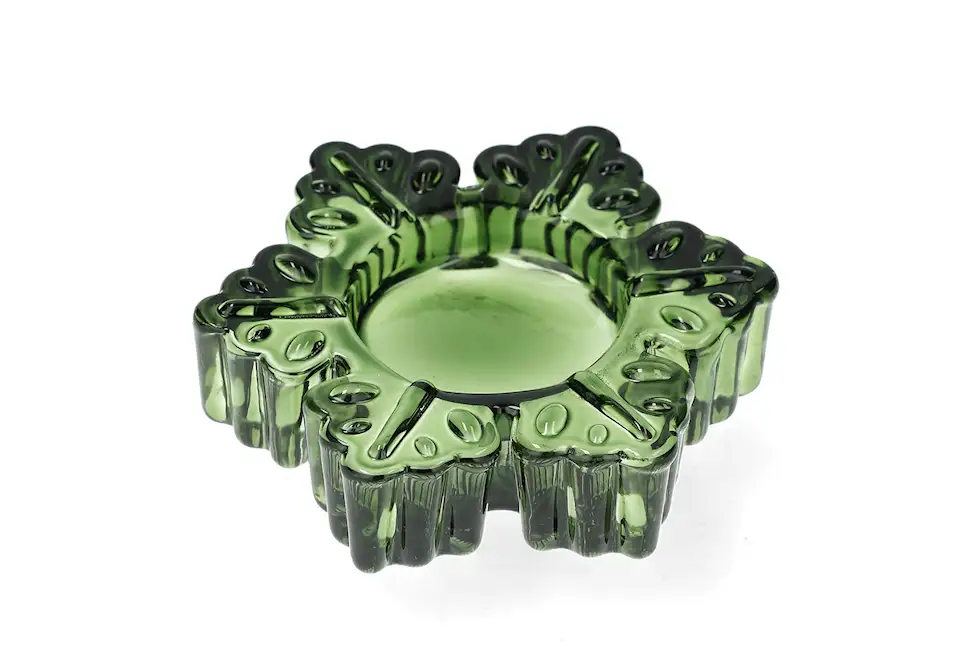 Lumihiutaleen muotoinen kynttilänjalka. Viehättävä tapa esitellä kynttilänvaloa talvella. Valmistettu lasista. Saatavilla eri väreissä ja kokoisina.