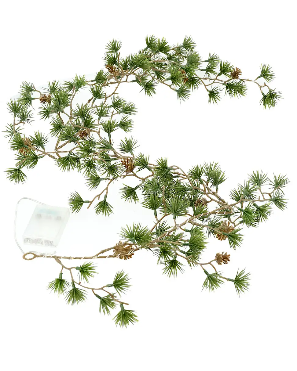 Nämä männynneulasilla ja käpyillä varustetut valosarjat ovat täydellinen tapa koristaa pöytää, seinää tai lasimaljakkoa. Valmistettu muovista.