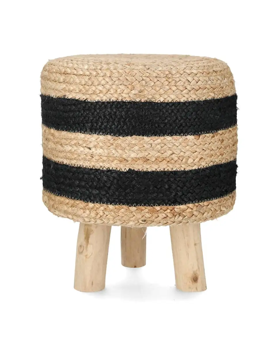 Luo viihtyisÀ oleskelutila tÀllÀ ihanalla punotulla jakkaralla, jossa on kolmijalka. Raidallinen muotoilu antaa tyylikkÀÀn ilmeen. Valmistettu juutista, puuvillasta ja eukalyptuspuusta. Vuorattu polyuretaanivaahdolla.