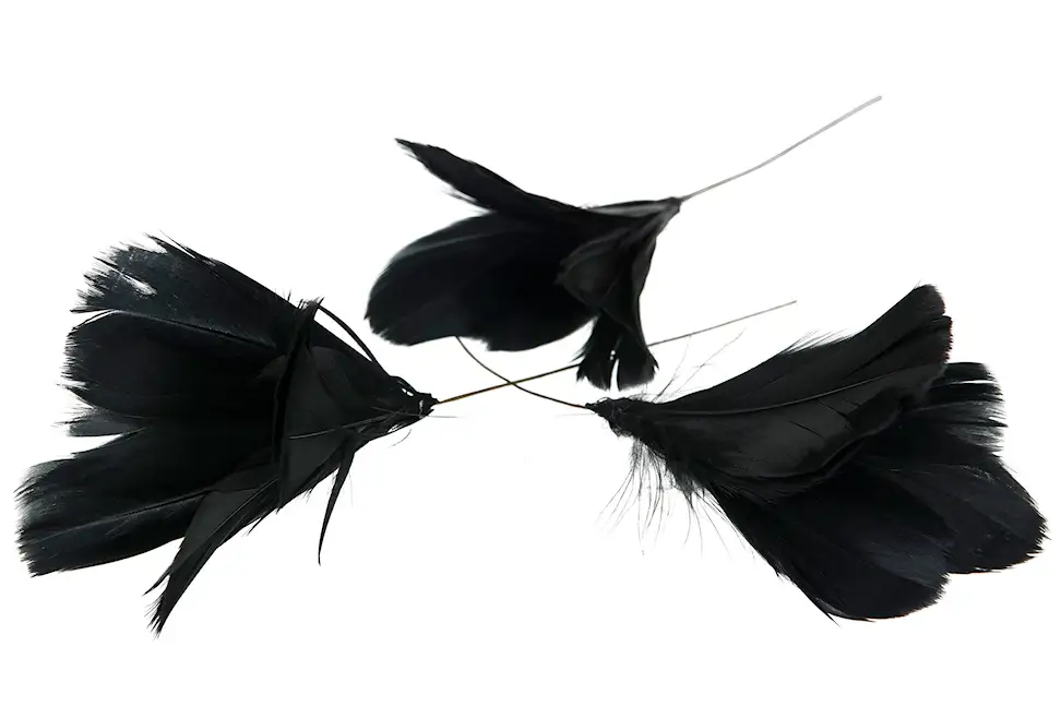Kukkien muotoiset, langalla koristellut höyhenet. Täydelliset oksien tai kukka-asetelmien koristeluun. Saatavilla eri väreissä.