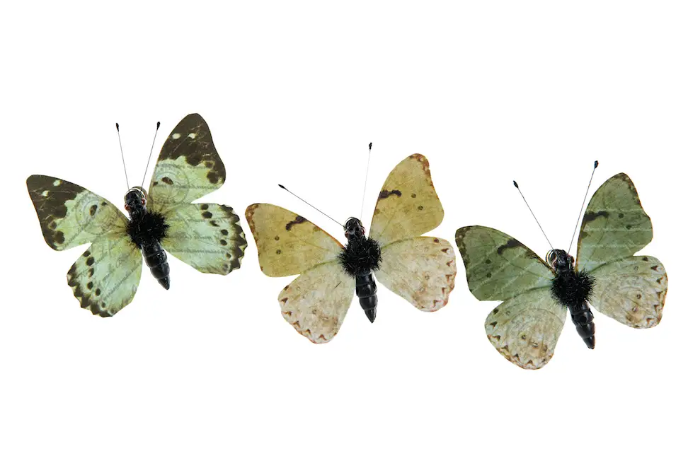 Fjärilar i vackra färger är perfekta som dekorationer runt en krans, på en kvist eller i något annat arrangemang. Tillverkade i plast med metallclips.