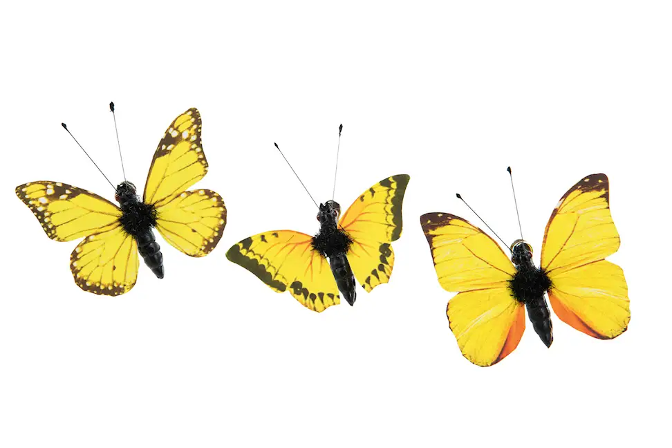 Ge blomsterarrangemanget, krukväxten, bordsplaceringen eller någon annan dekoration det lilla extra med dessa fina fjärilar med clips. Tillverkade i plast.
