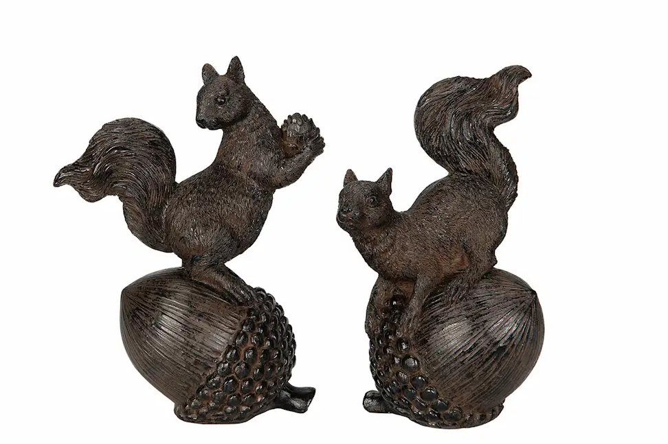 Ekorrar på ekollon som ger heminrednigen en touch av natur och lekfullhet. Tillverkad av poly.