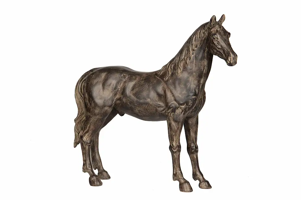 Den här dekorativa hästen kommer att se lika fin ut i bokhyllan, som på bordet eller fönsterbrädan. Tillverkad av poly.