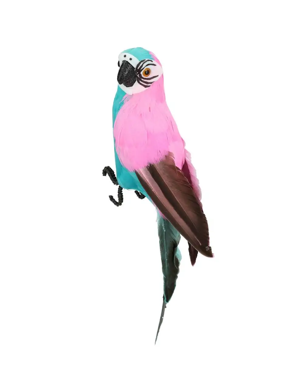 Färgglad Papegoja gjord av riktiga fjädrar och frigolit. Perfekt när du vill ha en exotisk touch i ditt hem.