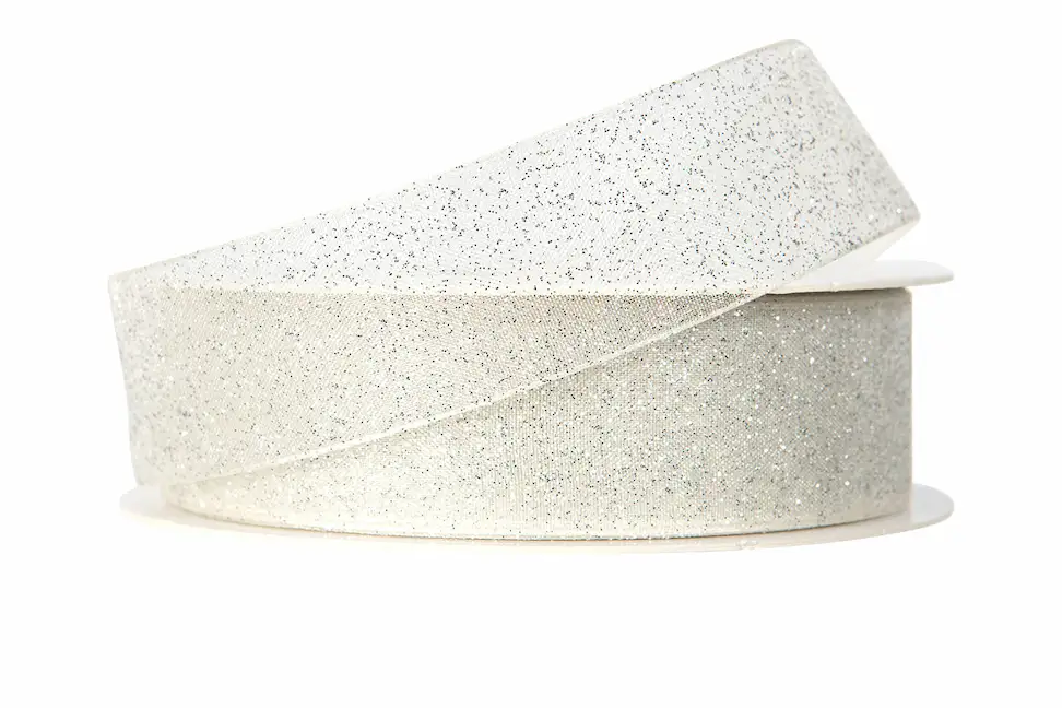 Tunt och glittrigt dekorationsband som ger inslagningen det lilla extra. Fint att kombinera med andra dekorationsband och presentband. Tillverkat i polyester. Finns i flera färger.