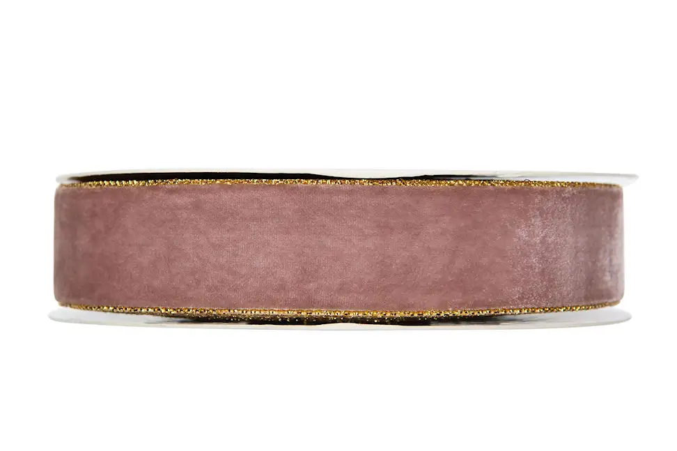 Dekorationsband Sammet Rosa/Guld 25 mm