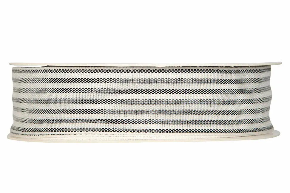 Detta randiga dekorationsband blir en fin detalj rund presenten eller i blomsterarrangemanget. Tillverkat i polyester. Finns i flera färger.