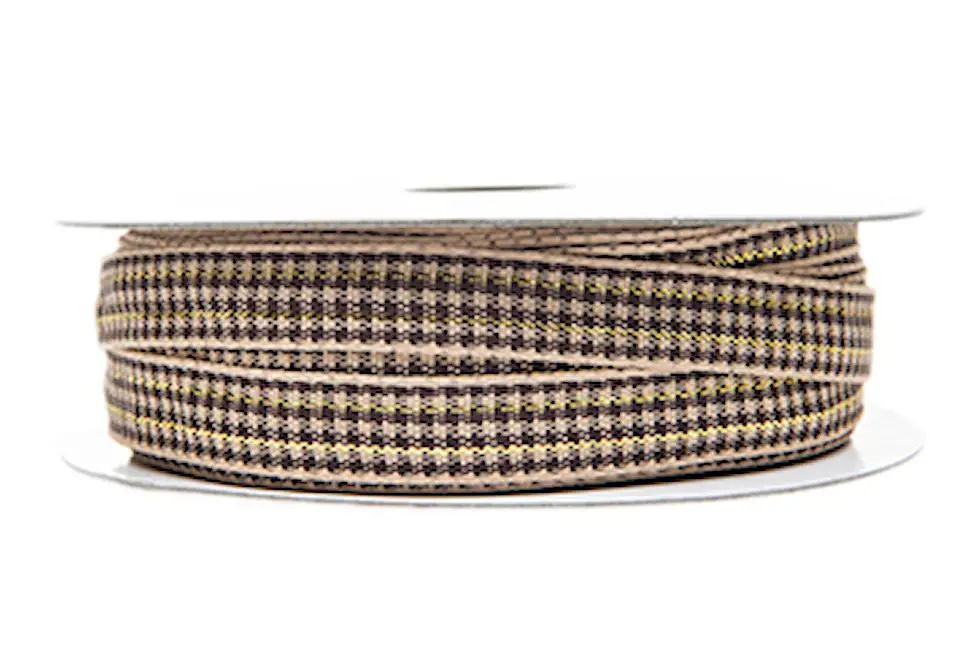 Dekorationsband Vichy Metall Brun/Guld 10 mm