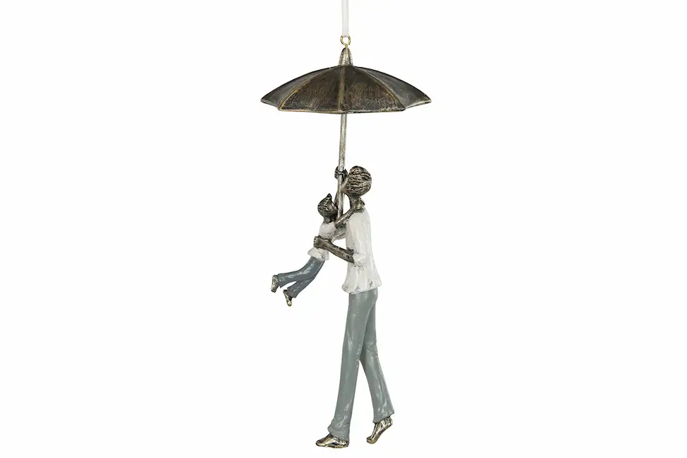 Fin hängande dekoration med en pappa och ett barn som håller ett paraply. En fin detalj att hänga i fönstret. Tillverkad i poly.