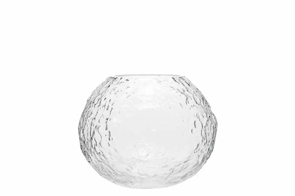 Ställ en bukett tulpaner eller andra vackra blommor i denna vas med mönstrad yta. Tillverkad i glas.
