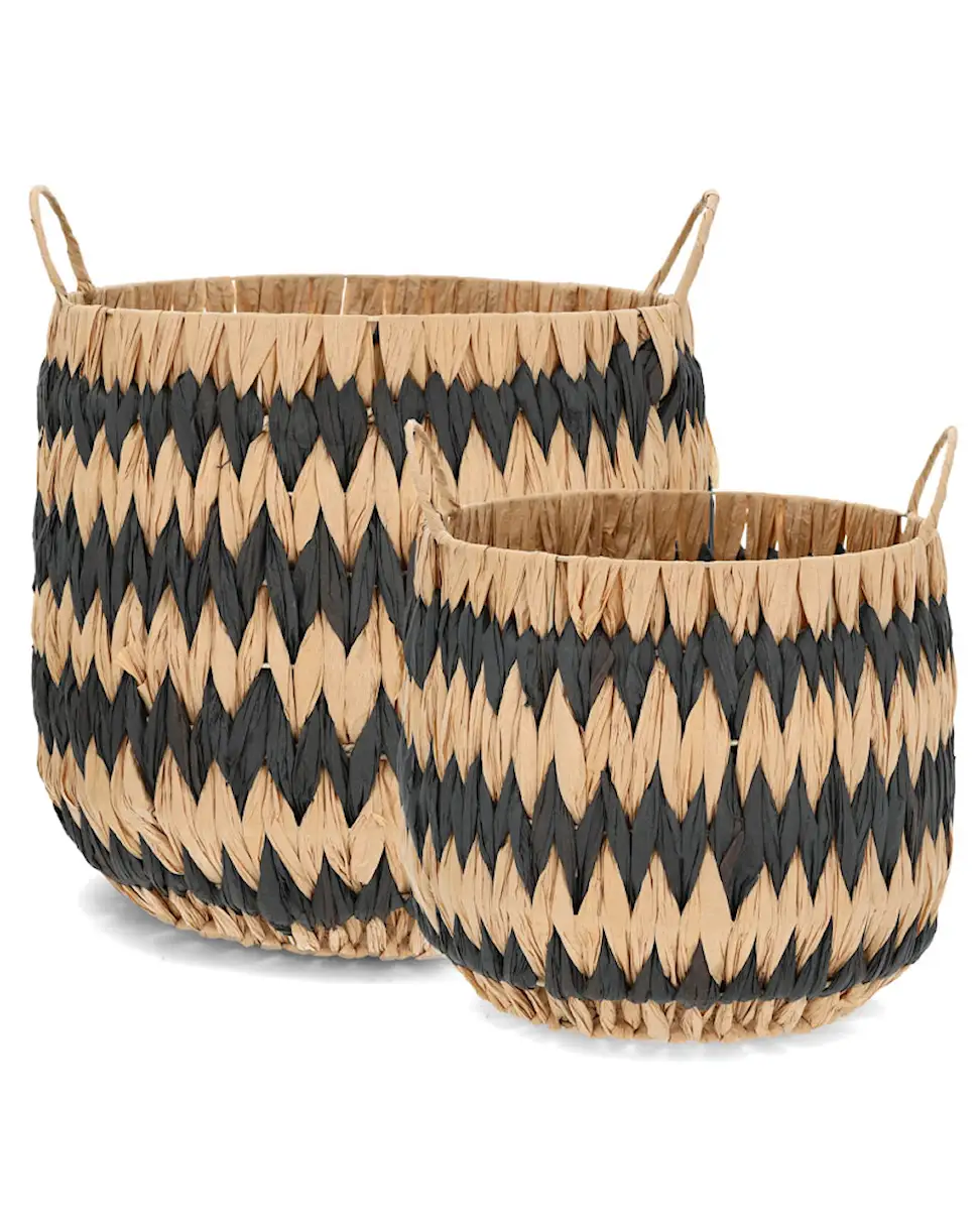 Korgarna Celina blandar naturliga material med smart funktion och form. Utrustade med handtag som gör de enkla att flytta omkring.