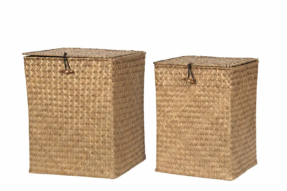Set med tre flätade lådor som du kan använda för förvaring eller bara som dekoration. Tillverkade av sjögräs.Finns i flera storlekar.