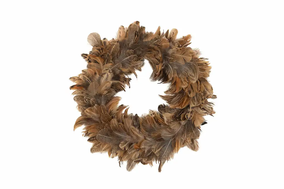 Krans med fjädrar som är fin att hänga upp som dekoration. Finns i flera färger och storlekar.