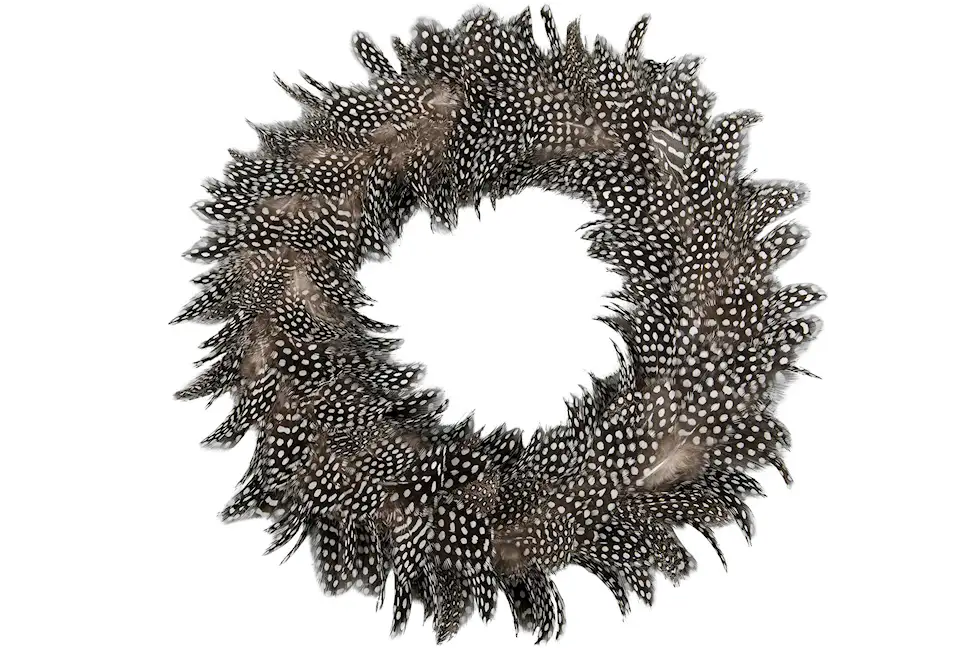 Krans med fjädrar som är fin att hänga upp som dekoration. Finns i flera färger och storlekar.