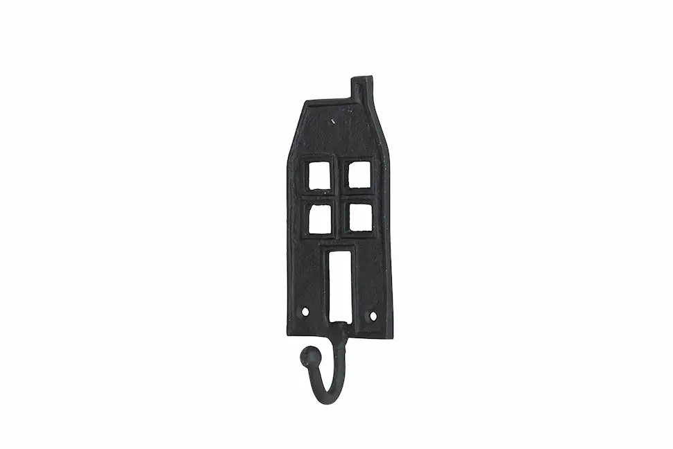 Häng väskor, kläder och annat på denna krok med ett hus. Tillverkad i metall.