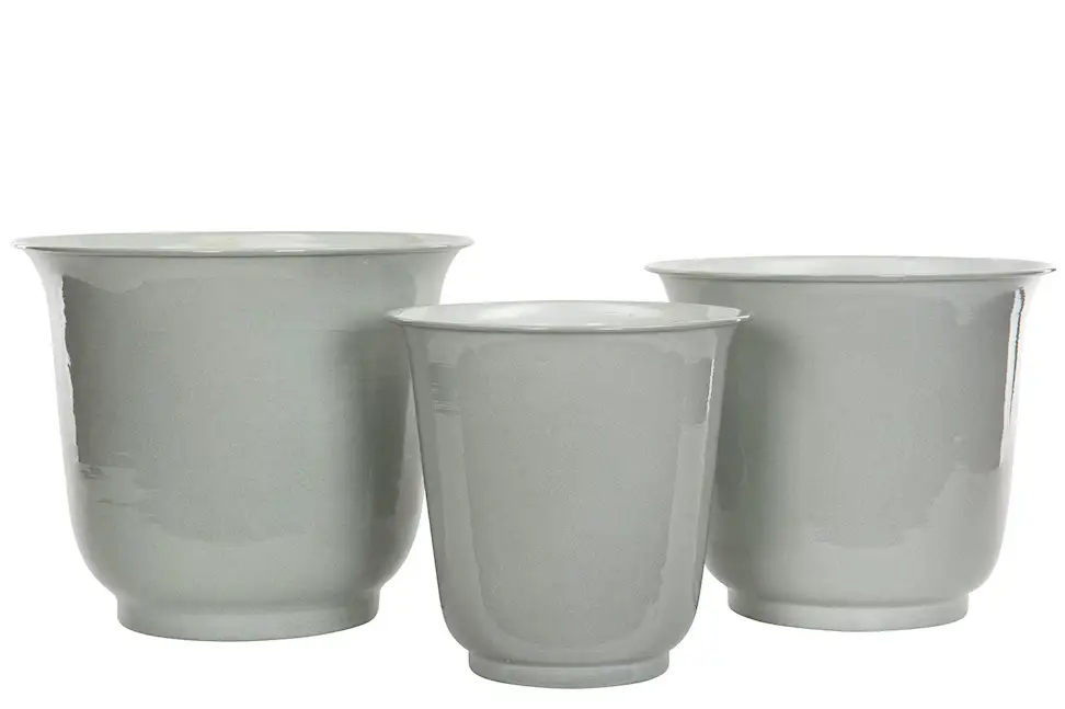 Ställ fram växter och vackra blommor i detta set med tre emaljerade krukor. Tillverkade i metall. Finns i flera färger.