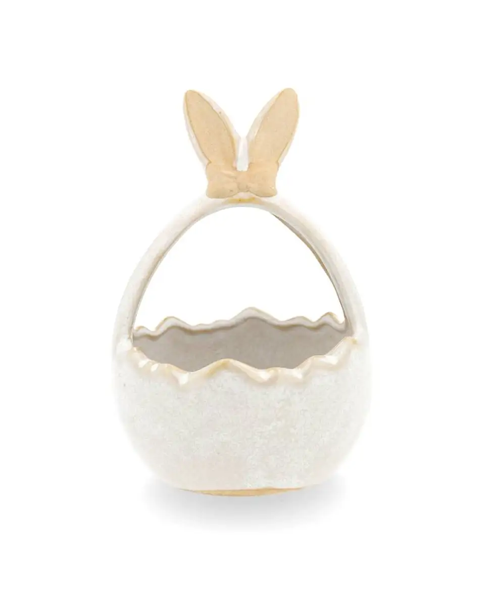 Ge favoritväxten en lekfull presentation, eller gör en fin påskblomma med denna kruka med kaninöron som ser ut som en korg. Tillverkad i stengods.