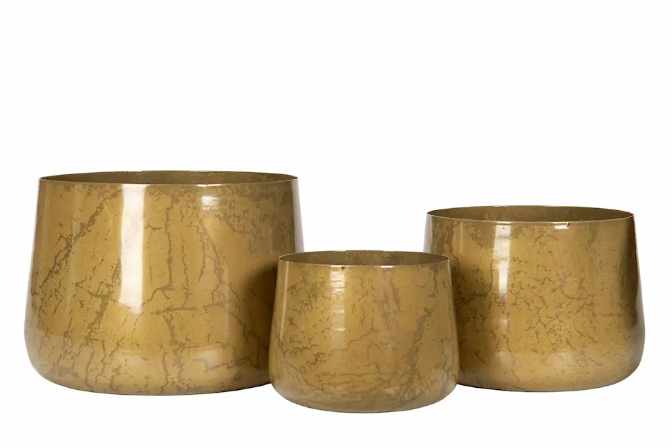 Detta set med tre runda krukor är perfekt för dig som vill ställa fram många växter. Tillverkade i metall. Finns i flera färger.