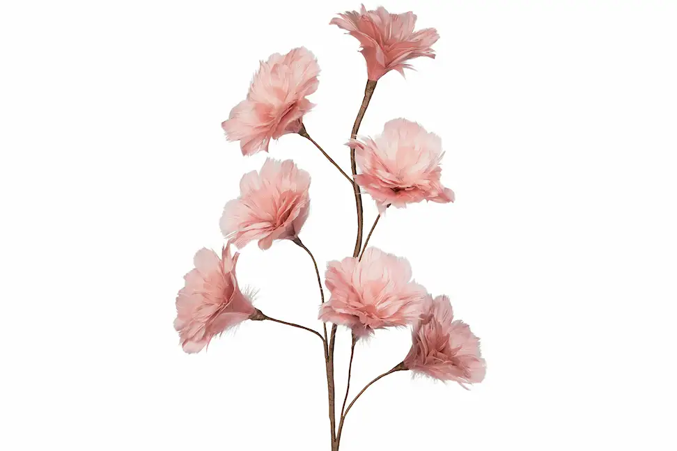 Denna kvist med blommor gjorda av fjädrar blir en fin detalj i ett blomsterarrangemang eller en vas. Finns i flera färger.