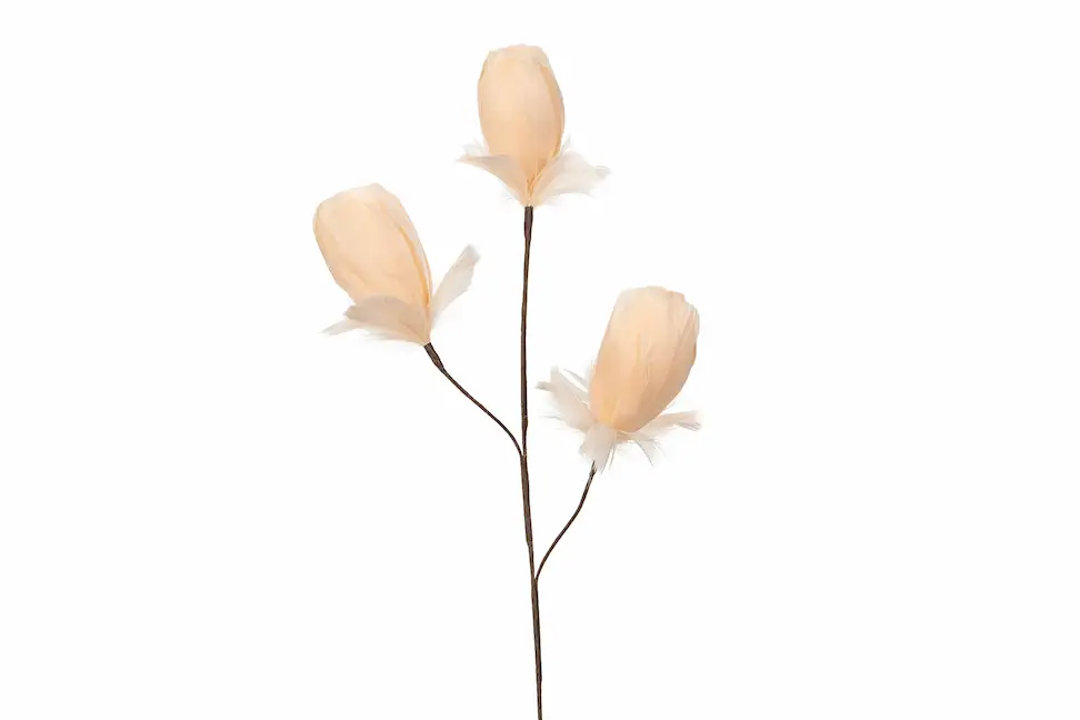 Denna kvist med blomknoppar gjorda av fjädrar blir en fin detalj i ett blomsterarrangemang eller en vas. Finns i flera färger.