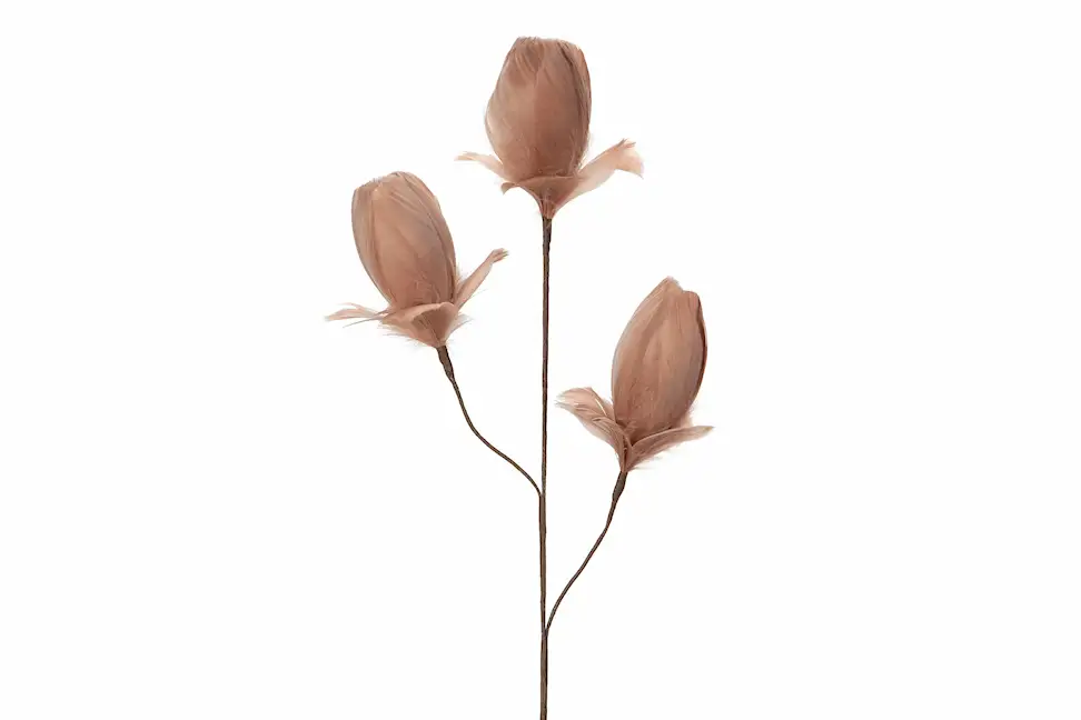Denna kvist med blomknoppar gjorda av fjädrar blir en fin detalj i ett blomsterarrangemang eller en vas. Finns i flera färger.