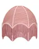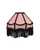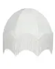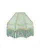 Grön lampskärm med fransar, vackert sydda kantband och sirliga mönster. Skärmens vändbara lamphållare gör att den kan användas till både bords- och taklampor. Finns i flera färger.