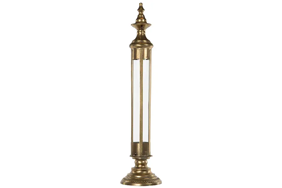 Denna eleganta lykta passar båda kronljus och värmeljus och är perfekt för att sprida skenet av levande ljus. Tillverkad i glas och metall. Finns i flera storlekar.