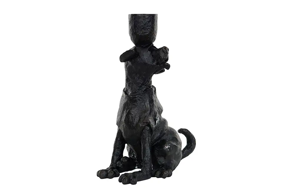 Sittande hund med ljushållare på huvudet. Passar dig som tycker om att inreda i djurinspirerad stil. Tillverkad i poly.