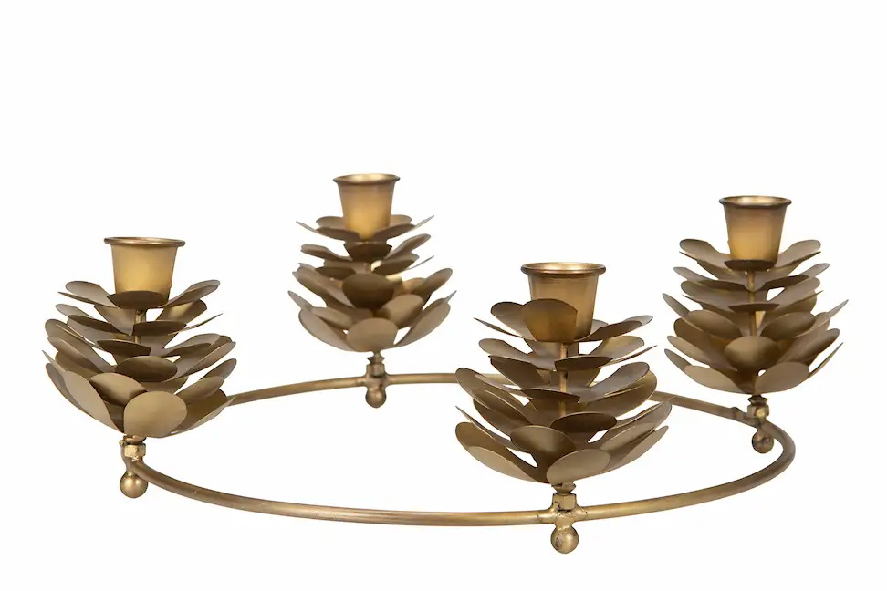 Ljusstake med kottar och plats för fyra kronljus. För dig som vill inreda med en känsla av skog och natur. Tillverkad i metall. Finns i flera färger.