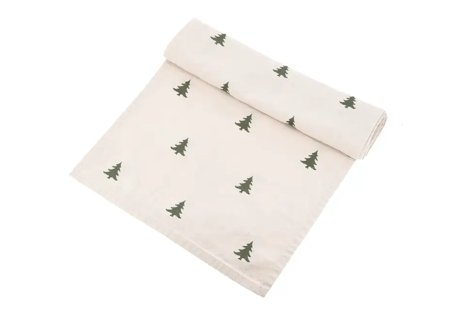 Ge bordet ett fint jultema med denna löpare med granmönster. Tillverkad i bomull.