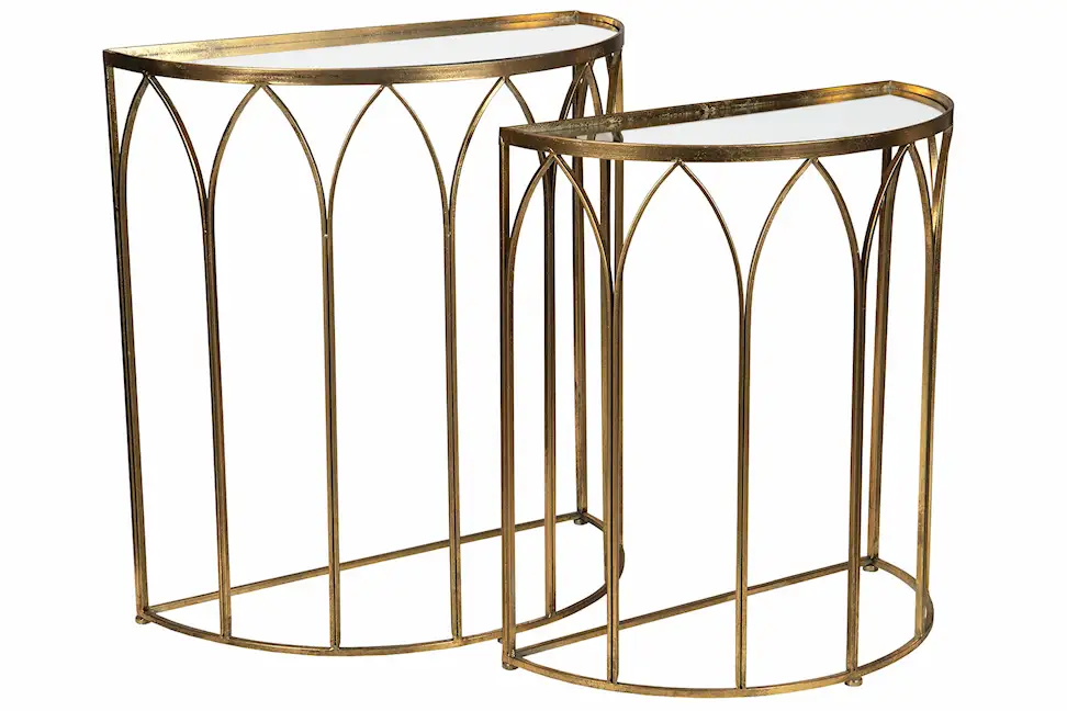 Set med två sidobord med bordskiva i spegelglas. För dig som vill ha en fin plats för växter, ljus och dekorationer. Tillverkat i metall och spegelglas.