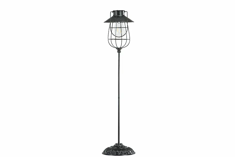 Lampa på fot som drivs av solceller. Vintertid kan batterier användas. För dig som vill ha en vackert upplyst trädgård. Tillverkad i plast, metall och glas.