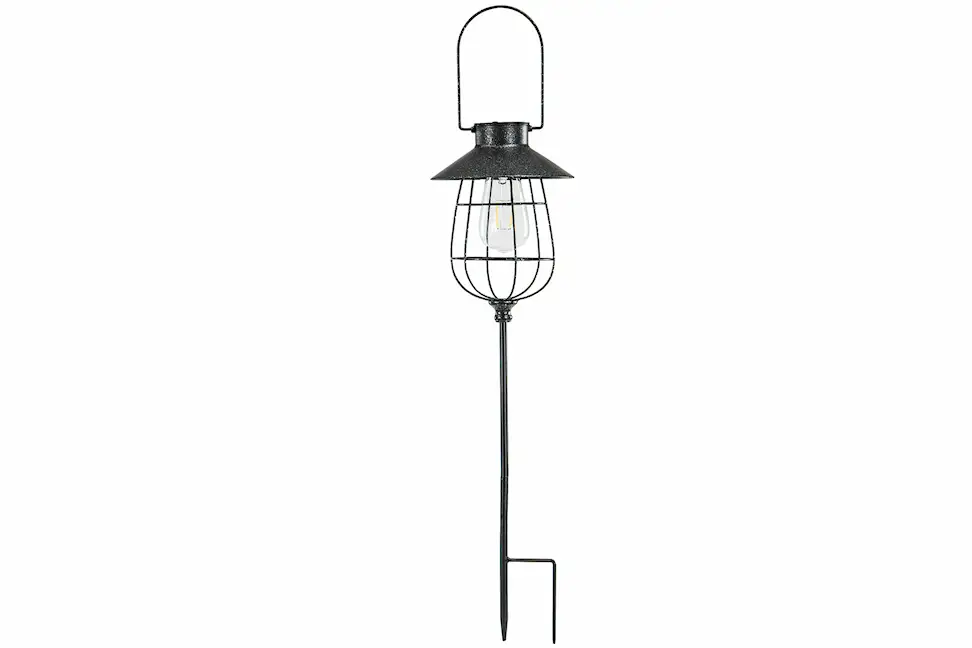 Lampa på pinne som drivs av solceller. Vintertid kan batterier användas. För dig som vill ha en vackert upplyst trädgård. Tillverkad i plast, metall och glas.