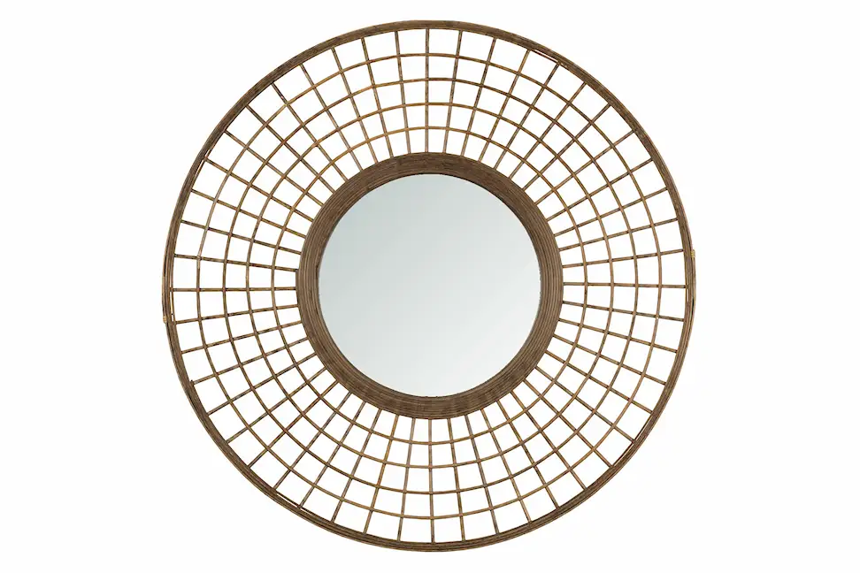 Spegel med bambuinspirerad ram som hänger vackert på väggen och passar alla rum. Tillverkad i spegelglas och metall.