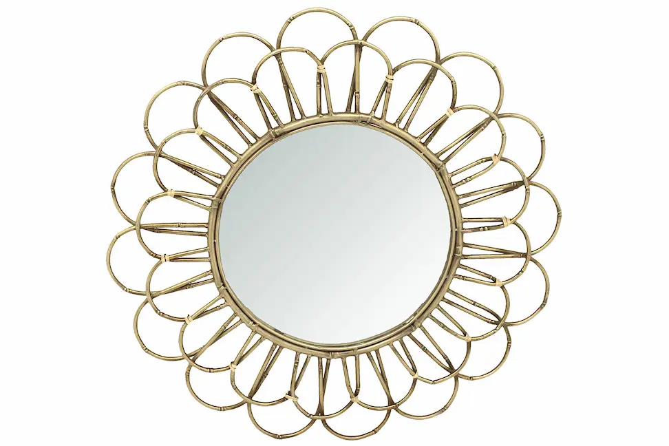 Spegel med bambuinspirerad ram som hänger vackert på väggen och passar alla rum. Tillverkad i spegelglas och metall.