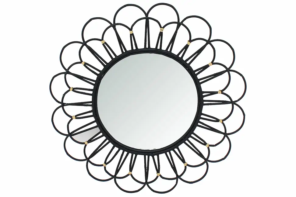 Spegel med bambuinspirerad ram som hänger vackert på väggen och passar alla rum. Tillverkad i spegelglas och metall.