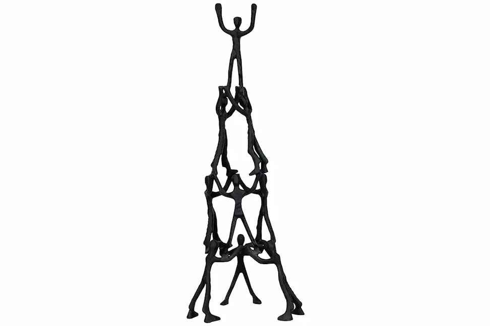 Dekoration med människor som bildar en pyramid. Perfekt att ha på soffbordet eller en bänk. Tillverkad av poly.