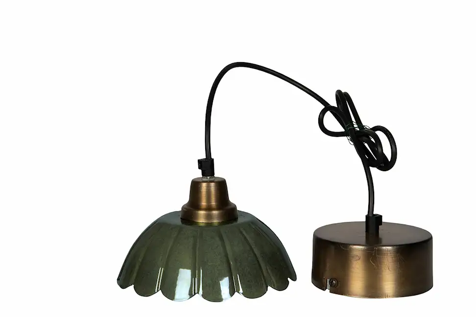 Blomformad lampa som med sin lite mindre storlek hänger vackert i fönstret. Tillverkad i metall. Finns i flera färger.