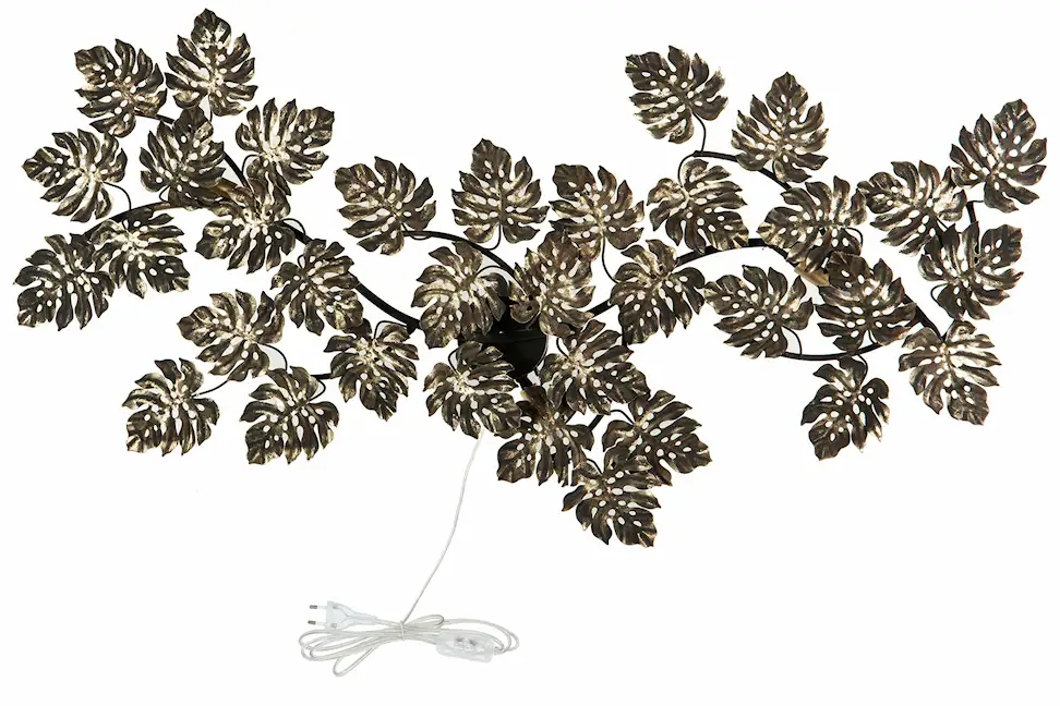 En stor och dekorativ vägglampa med vackra blad. Fungerar både som belysning och dekoration. Tillverkad i metall.