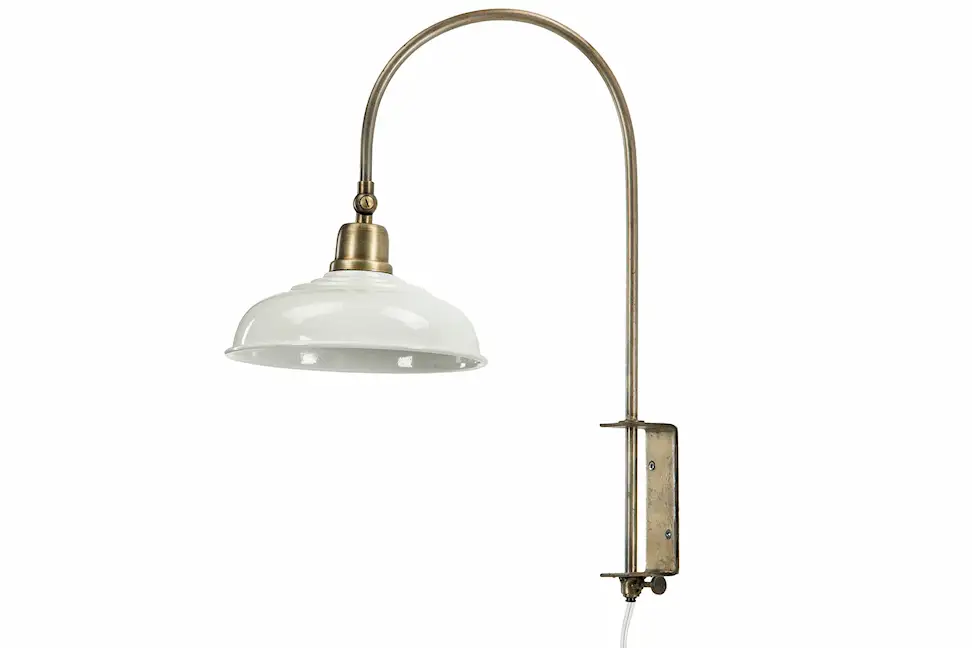 Vår vägglampa Noa har en ställbar skärm och sitter perfekt på väggen vid läsfåtöljen. Tillverkad i metall. Finns i flera färger.