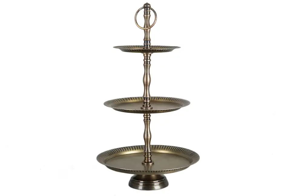 Detta våningsfat i tre nivåer med handtag upptill blir ett vackert sätt att ställa fram dekorationer på eller kombinera med våra magnetiska ljushållare. Tillverkat i metall. Finns i flera färger.