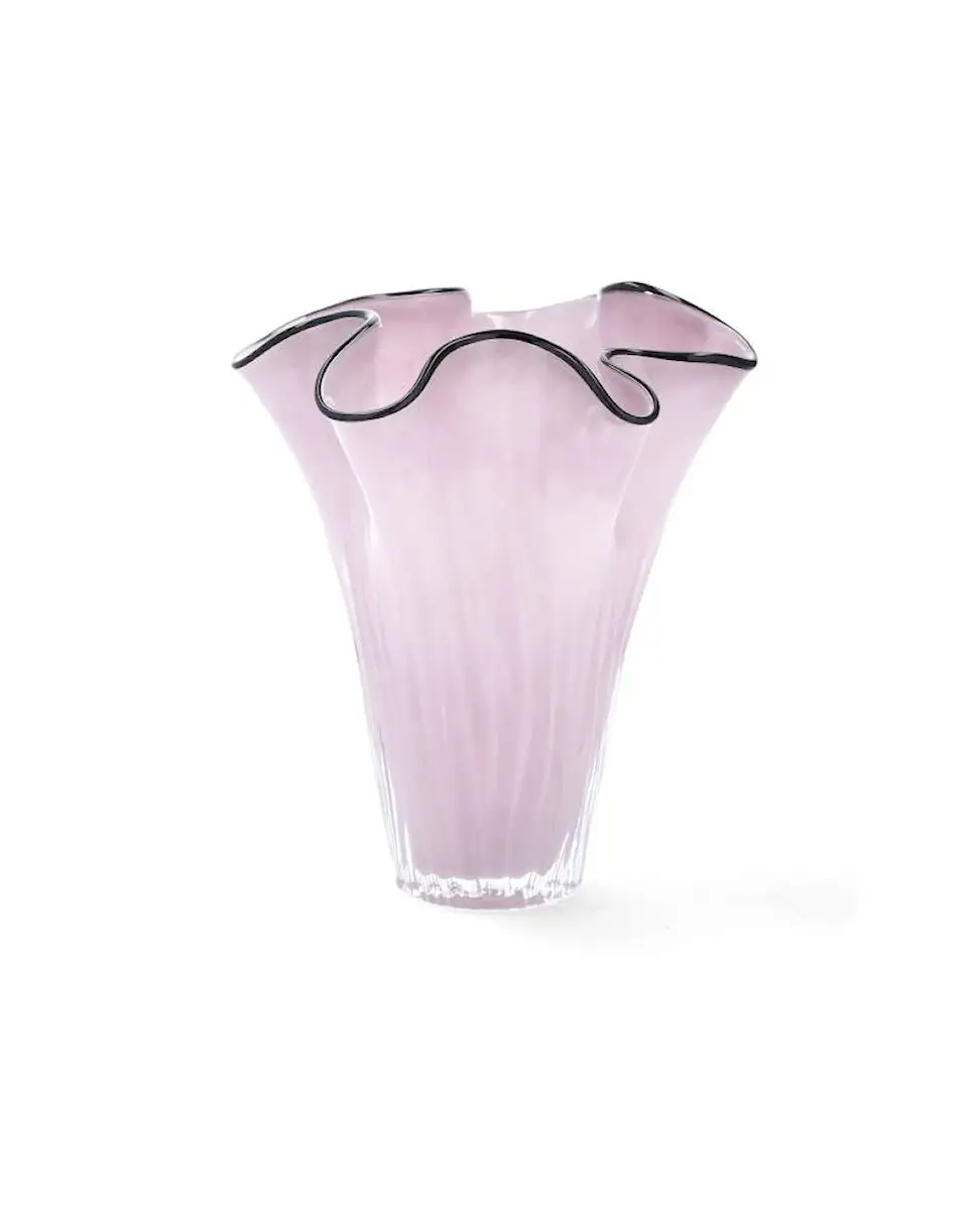 Gör inredningen lite finare med en bukett blommor i denna vågiga vas. Tillverkad i glas.