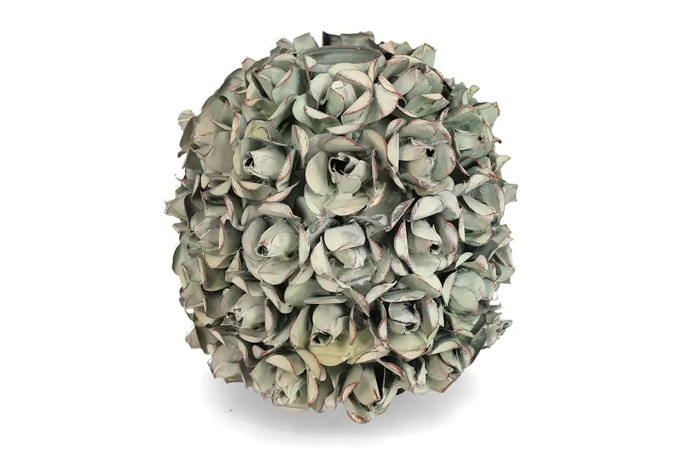 Denna vas med dekorativa rosdetaljer är vacker både som den är och tillsammans med blommor. Tillverkad i metall. Finns i flera färger.